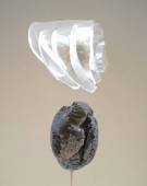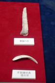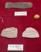 下本山岩陰の地層は、貝層・灰層が重なり合う、アルカリ土壌であったため、人骨が残ったようです。