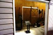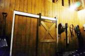 農作業の必需品が納屋の壁一面に掛けてあり、 毎日使用される道具の位置は決まっている。 枝豆のもぎ取りもこの季節である。 |