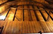 この牛舎はキング式牛舎で、大きな梁や柱などを使わず、薄い間柱の組み立てによるバルーンフレーム構造が特徴である。