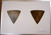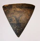 三角形の板状の石に目や眉などが黒色の顔料で描かれている。縄文時代の顔の絵は極めて珍しく、顔料で描かれ、また石製品に⤵ |