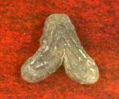 ※幼児が噛んだ粘土塊を焼いたもの。廃棄場から出土。 |