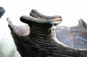 スズラン模様のような彫刻刀の削り跡があざやかな刻画。 |