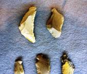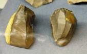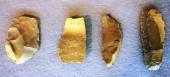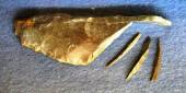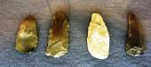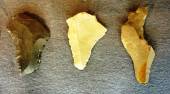 湯の里4遺跡では、旧石器時代の石器の中から台形石器が見つかりました。これは西北九州に多く分布する石器で、北海道では初の発見です。