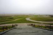 津波館の外にある土盛の上にある震災モニュメント。