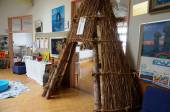展示室が3室ということは、稲穂小学校は一教室に2学年ずつの複式授業で、上記の民具・農具のある場所は、講堂だったのでしょう。
