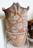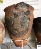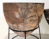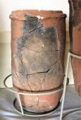 以前はどこかの遺跡で、巨大な丸木舟の胴部を輪切りにし、二つ合わせて井戸の囲いにしました。これも、同じく耐久性重視のためでしょう。