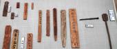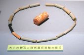 刻み目が彫られた鹿角製品は、 形代などの祭祀遺物と一緒に出土しました。 棒ささらやギロと同じく棒などでこすって音を出したと考えられています。 |