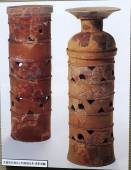 人の顔を表現した土器には、 盛装の人物を表現したものと壺の体部に顔を表現した仮面のようなものがあります。