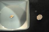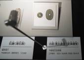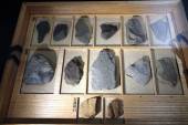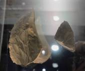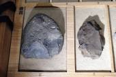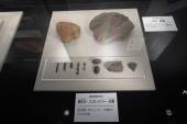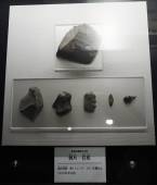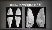 石核:石器接合し利用は、道具のつくり方を知れる貴重な資料。荒く割って貝殻状の石器を取っている。道具のもとの出来上がり。 |