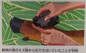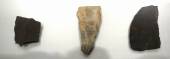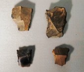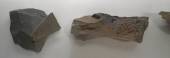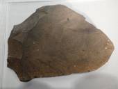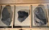 礫器:見事なチョッピングツール(礫器)・動物の骨を解体に使っていた。ガラス質の安山岩だ。